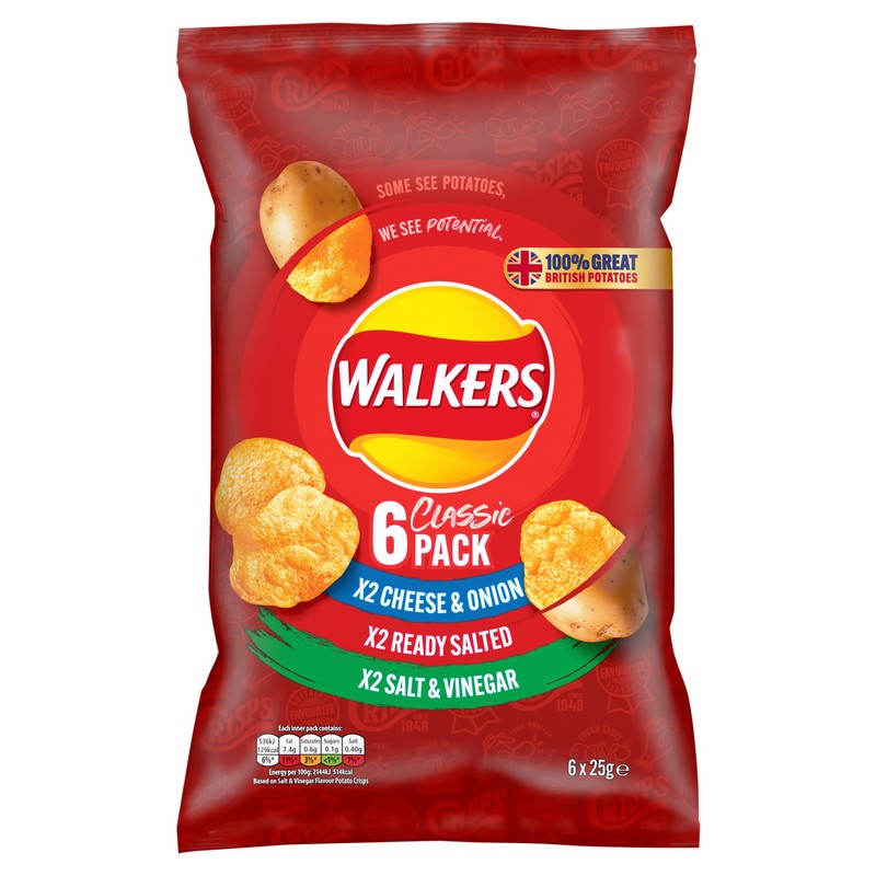 Ingredients | Cheese & Onion Potatoes, Sunflower Oil, Cheese & Onion Seasoning [Onion Powder, Dextrose, Flavour Enhancers: Monosodium Glutamate, Disodium 5'-Ribonucleotide; Yeast Extract, Salt, Whey Powder (MILK), Cheese Powder (MILK), Processed Cheese Powder (Cheese & Dairy Solids (MILK), Salt, Palm Oil), Flavourings, Acid: Citric Acid; Spice Extracts (Paprika, Black Pepper)] Salt & Vinegar Potatoes, Sunflower Oil, Salt & Vinegar Seasoning [Flavourings, Cornflour, Flavour Enhancer: Monosodium Glutamate; Salt, Potassium Chloride, Acid: Citric Acid] Smoky Bacon Potatoes, Sunflower Oil, Smoky Bacon Seasoning [Dextrose, Maltodextrin, Sugar, Salt, Flavour Enhancers: Monosodium Glutamate, Disodium 5'-Ribonucleotide; Flavourings (Flavour Enhancers: Monosodium Glutamate, Disodium 5'-Ribonucleotide), Yeast Extract, Acids: Citric Acid, Malic Acid; Smoke Flavourings, Colour: Paprika Extract] |