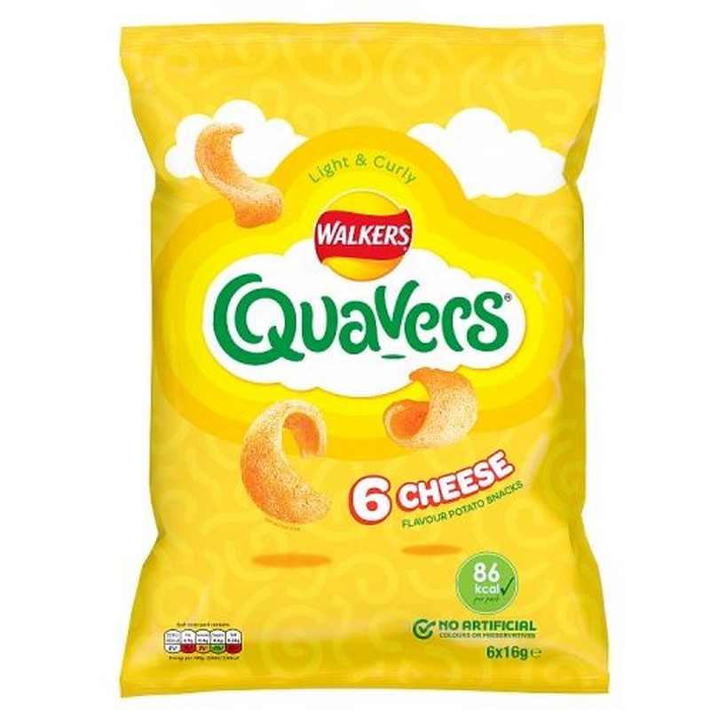 Cheese & Onion Per 100g: Energy: 2209kJ, : 530kcal, Fat: 31.9g, of which saturates: 4.1g, Carbohydrate: 53.0g, of which sugars: 3.1g, Fibre: 3.0g, Protein: 6.1g, Salt: 1.27g, RI = reference intake of an average adult (8400kJ / 2000kcal), Pack contains 4 servings Per 25g Pack: Energy: 552kJ, : 132kcal, Fat: 8.0g, of which saturates: 1.0g, Carbohydrate: 13.3g, of which sugars: 0.8g, Fibre: 0.8g, Protein: 1.5g, Salt: 0.32g, RI = reference intake of an average adult (8400kJ / 2000kcal), Pack contains 4 servings % adult RI per 25g Pack: Energy, : 7%, Fat: 11%, of which saturates: 5%, Carbohydrate, of which sugars: 1%, Fibre, Protein, Salt: 5%, RI = reference intake of an average adult (8400kJ / 2000kcal), Pack contains 4 servings Salt & Vinegar Per 100g: Energy: 2208kJ, : 529kcal, Fat: 31.8g, of which saturates: 4.0g, Carbohydrate: 53.6g, of which sugars: 0.8g, Fibre: 2.9g, Protein: 5.7g, Salt: 1.69g, RI = reference intake of an average adult (8400kJ / 2000kcal), Pack contains 3 servings Per 25g Pack: Energy: 552kJ, : 132kcal, Fat: 8.0g, of which saturates: 1.0g, Carbohydrate: 13.4g, of which sugars: 0.2g, Fibre: 0.7g, Protein: 1.4g, Salt: 0.42g, RI = reference intake of an average adult (8400kJ / 2000kcal), Pack contains 3 servings % adult RI per 25g Pack: Energy, : 7%, Fat: 11%, of which saturates: 5%, Carbohydrate, of which sugars: <1%, Fibre, Protein, Salt: 7%, RI = reference intake of an average adult (8400kJ / 2000kcal), Pack contains 3 servings Smoky Bacon Per 100g: Energy: 2207kJ, : 529kcal, Fat: 31.5g, of which saturates: 3.9g, Carbohydrate: 54.4g, of which sugars: 3.4g, Fibre: 2.9g, Protein: 5.5g, Salt: 1.42g, RI = reference intake of an average adult (8400kJ / 2000kcal), Pack contains 3 servings Per 25g Pack: Energy: 552kJ, : 132kcal, Fat: 7.9g, of which saturates: 1.0g, Carbohydrate: 13.6g, of which sugars: 0.9g, Fibre: 0.7g, Protein: 1.4g, Salt: 0.35g, RI = reference intake of an average adult (8400kJ / 2000kcal), Pack contains 3 servings % adult RI per 25g Pack: Energy, : 7%, Fat: 11%, of which saturates: 5%, Carbohydrate, of which sugars: 1%, Fibre, Protein, Salt: 6%, RI = reference intake of an average adult (8400kJ / 2000kcal), Pack contains 3 servings